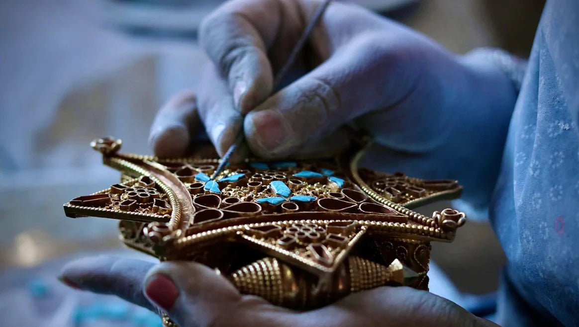 R.K. Gomba is a passionate jewelry artisan who began his journey into this industry after receiving training from “Gharelu”. After working in the industry for a few years, he started his own company in 2003 and has been thriving in the business ever since.